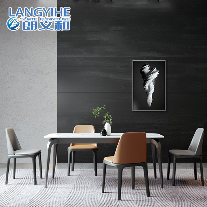 Обеденный стол и стул итальянского минималистского ресторана дома современного минималистского нордического светлого роскошного прямоугольный мраморный